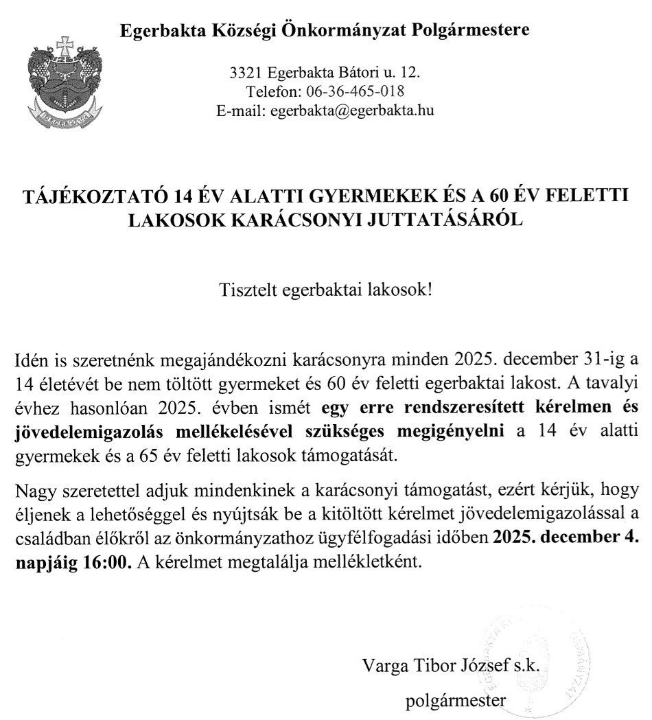 2025. november 12. Tájékoztató Kérelem 14 év alatti gyermekek karácsonyi juttatáshoz 2025.docx Kérelem 60 év felettiek karácsonyi juttatáshoz 2025.docx